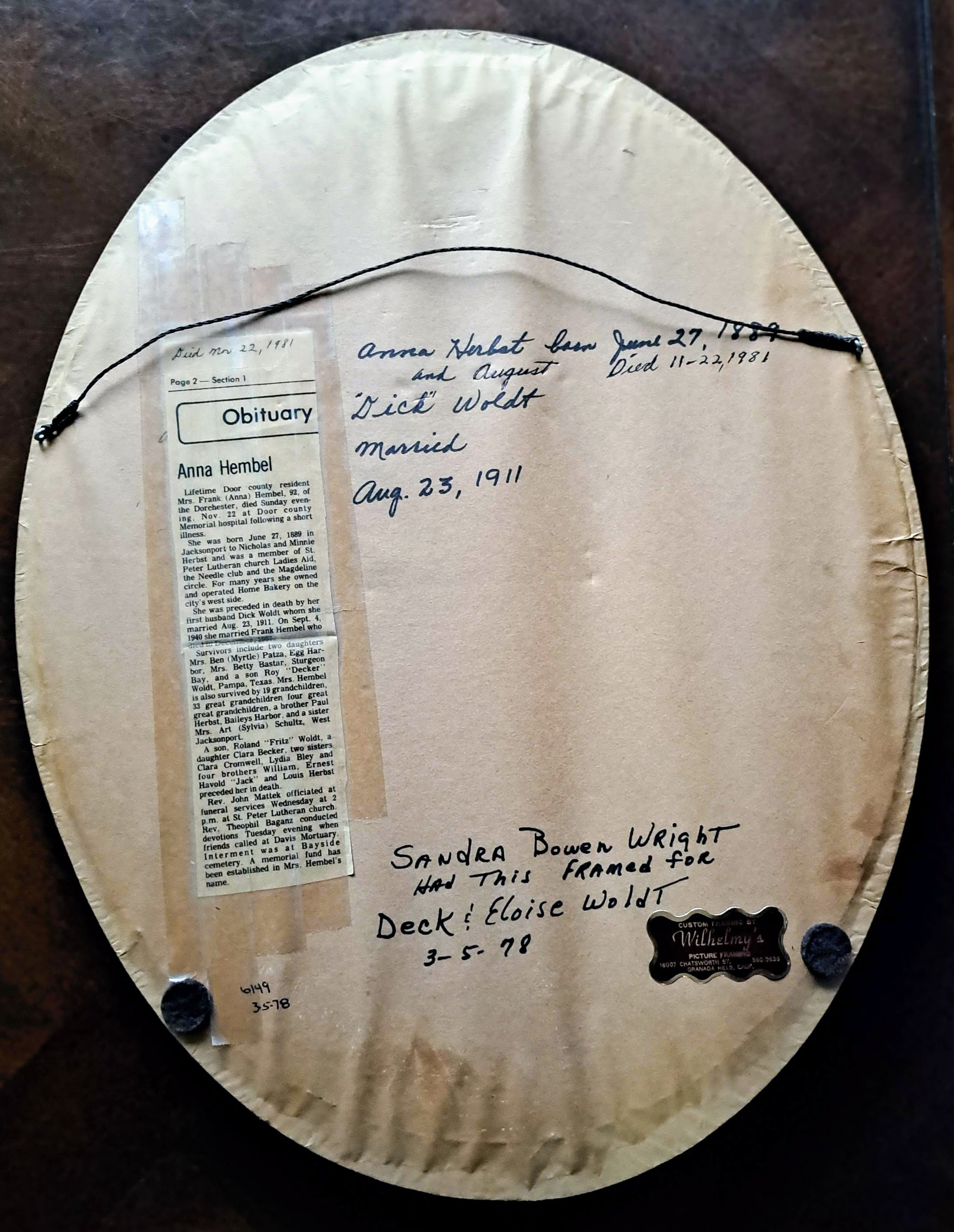 Personal note from Richard Alan Woldt